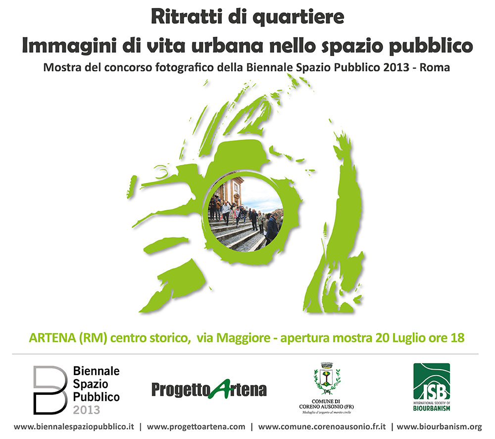 Dal 20 al 31 Luglio, nel centro storico di Artena (RM), in Via Maggiore, avrà luogo un piccolo allestimento con una selezione di fotografie dei vincitori del concorso fotografico “Ritratti di quartiere – Immagini di vita urbana nello spazio pubblico”. La mostra sarà in concomitanza con la settimana della seconda summerschool della International Society of Biourbanism che ha curato l’allestimento.