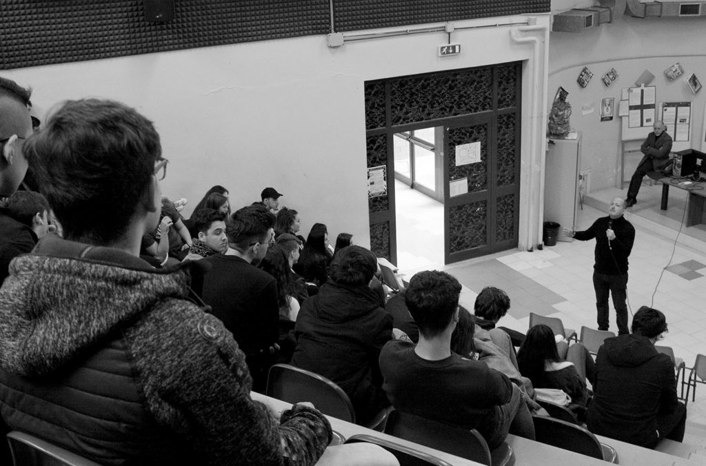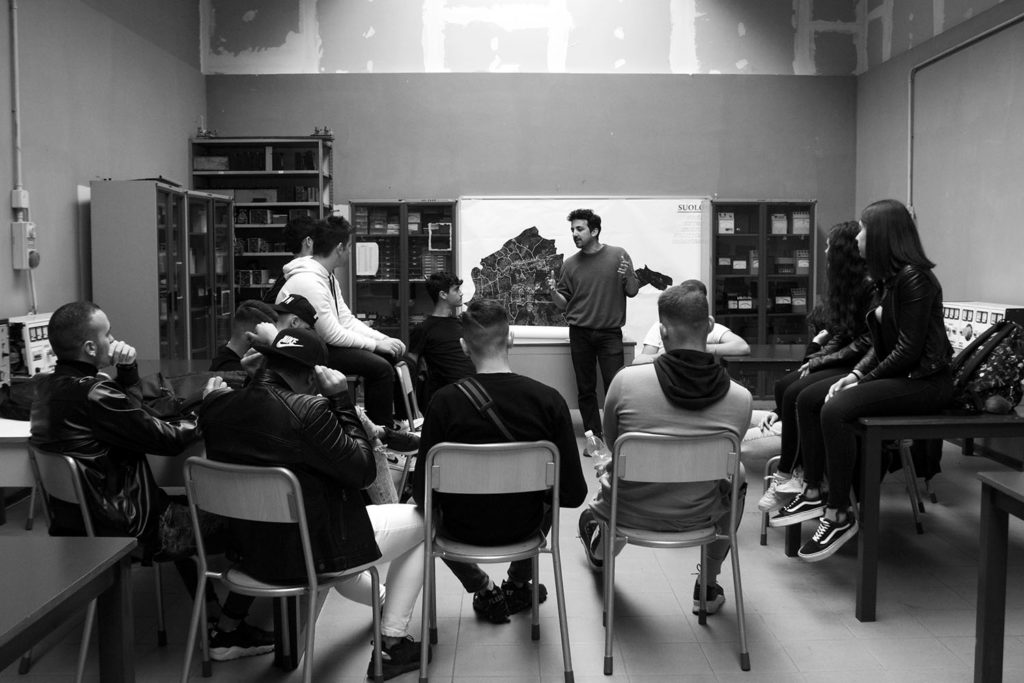 Giovedì 28 marzo, presso l’ I.T.C. Giorgi, si è tenuto il quarto incontro del percorso di O.D.F – Laboratorio stabile. La regista Flavia Montini ha coinvolto i ragazzi trattando il rapporto tra cinema e città. Città come proscenio reale, all’interno del quale ha luogo la magia del plot narrativo; luogo in continua evoluzione spiegata attraverso estratti di film e documentari. La necessità di raccontarsi tramite l’arte, la necessità di sentirsi appartenenti ad una realtà, dalla quale si vuole evadere, o che si ama visceralmente. A seguire, il prof. Maurizio Moretti è intervenuto, spiegando l’anima del progetto, indirizzando gli studenti ad un modus operandi organico. Al termine dell’intervento del prof. Moretti hanno avuto luogo i laboratori.
