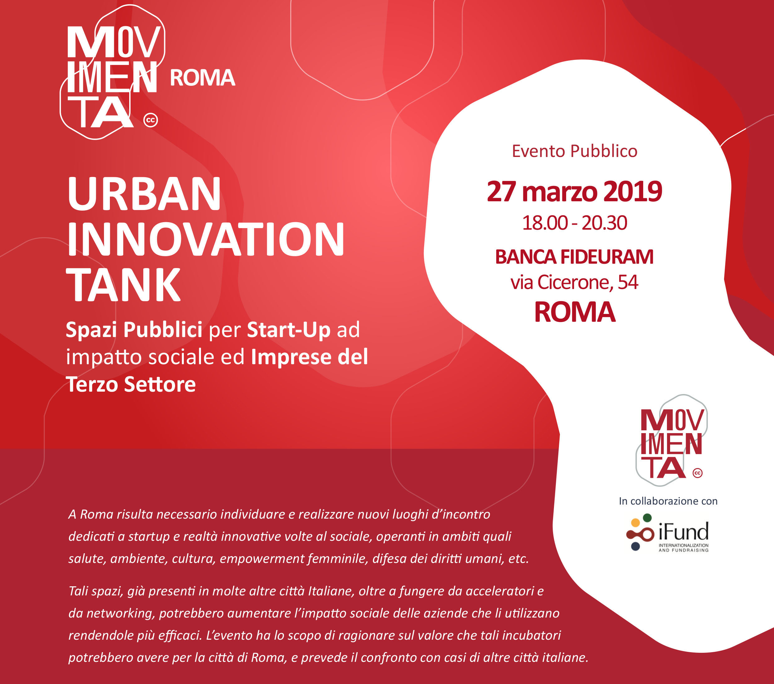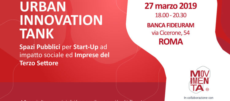 il 27 Marzo dalle ore 18.00 alle 20.30 in via Cicerone, 54 – Roma si svolgerà l’incontro: URBAN INNOVATION TANK – Spazi Pubblici per Start-Up ad impatto sociale ed Imprese del Terzo Settore