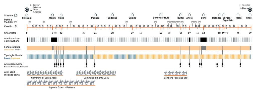 Il caso-studio dell’itinerario di ferrovia dismessa Chilivani-Tirso mostra come l’infrastruttura rigenerata diventa l’armatura portante di questa narrazione delle peculiarità locali, promuovendo occasioni di integrazione territoriale e restituendo funzione economica alle risorse del territorio.