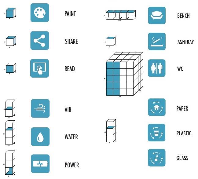 La forma della Stazione è generata da una composizione di moduli funzionali alle necessità percepite nei luoghi di inserimento; questa costruzione è adattabile nel tempo grazie a un processo di interazione continuo con gli abitanti.