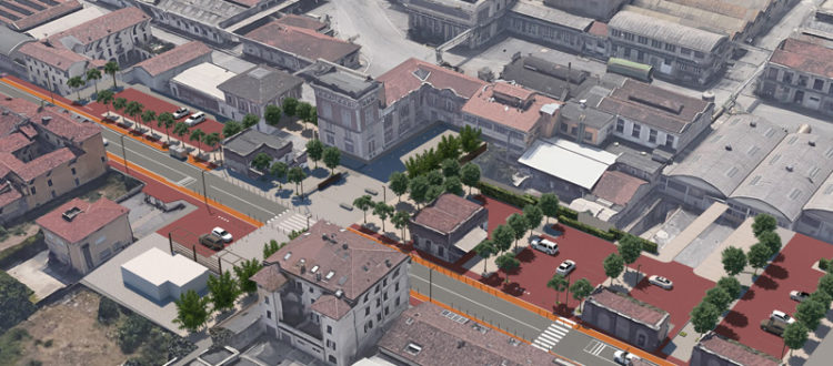 - Via Milano e apertura dei fronti, riqualificazione di un tratto dell’arteria storica, circa 1 km, con l’inserimento di piste ciclabili, ambiti pedonali e nelle aree “ex Caffaro” piazze, giardini e parcheggi;
