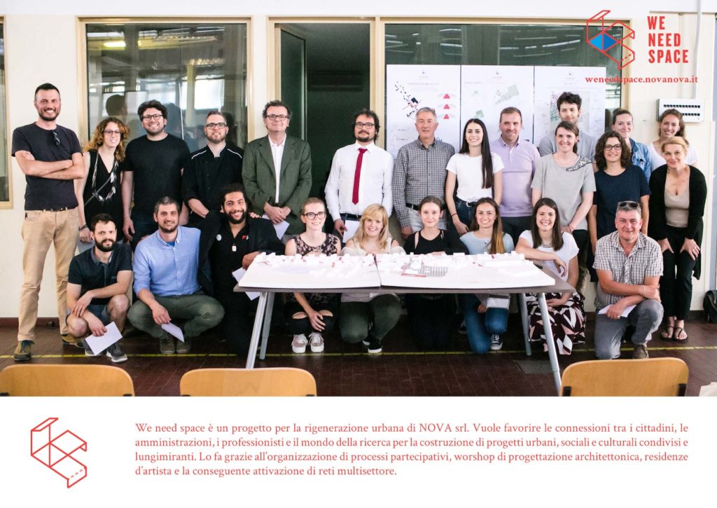We need space è un progetto sociale e culturale che vuole favorire le connessioni tra i cittadini, le amministrazioni, i professionisti e il mondo della ricerca per la costruzione di progetti condivisi e lungimiranti. Lo fa grazie all’organizzazione di processi partecipativi, workshop di progettazione architettonica, residenze d’artista e la conseguente attivazione di reti multisettore.