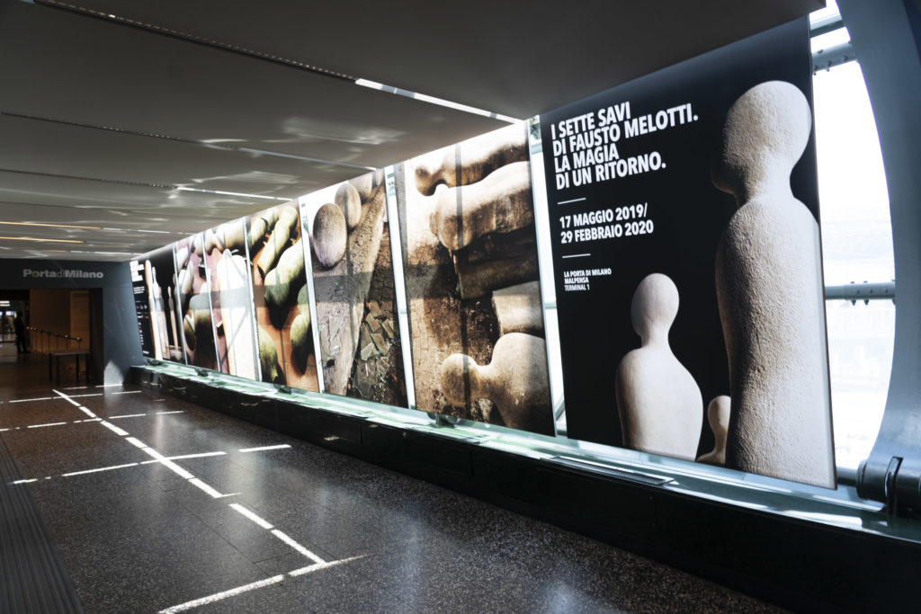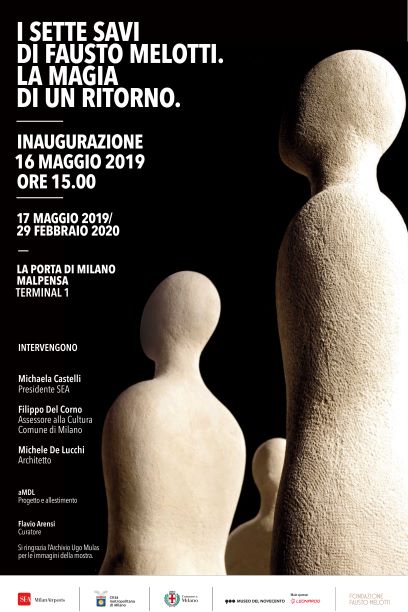 A cinque anni di distanza dall’esposizione voluta da SEA e dal Comune di Milano a Malpensa, i Sette Savi tornano nello spazio espositivo “La Porta di Milano” dell’aeroporto internazionale di Milano Malpensa con un nuovo e ricco allestimento ideato da Michele De Lucchi e curatela di Flavio Arensi, per stabilire un nuovo dibattito intorno al complesso scultoreo, promuovendo al contempo una definitiva collocazione dell’opera. Dodicesima esposizione presso la Porta di Milano, ormai riconosciuta come nuova ed alternativa hub culturale del territorio milanese e lombardo, i Sette Savi -figure silenti che sembrano spargersi tra lo spazio dei passeggeri ma senza perdere la loro intima connessione-rappresentano gli ambasciatori per tutti coloro che attraversano una delle nuove Porte Metropolitane, in grado di accogliere tutti coloro in arrivo e in partenza da Milano, testimonianze di cultura, di storia e capacità di riflettere sui tempi e i luoghi in cui siamo chiamati a vivere. La creazione di una consapevolezza sull’identità del territorio circostante, il sostegno di una domanda culturale, e lo sviluppo di una atmosfera creativa promuovendo l’innovazione, porta SEA e i suoi aeroporti a rispondere al bisogno di “relazioni” al di là delle “connessioni” tra le persone, innalzando il livello di qualità e di crescita socioeconomica del territorio, trasformando gli aeroporti da “non luoghi” a spazi pubblici dotati di una propria identità sociale.