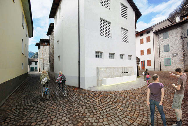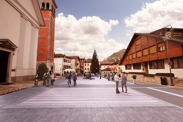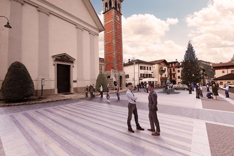Di definire, o forse ri-definire nella piazza, l’idea di Claut, l’idea del luogo, piazza San Giorgio, l’idea di rappresentazione della piazza e della sua memoria.