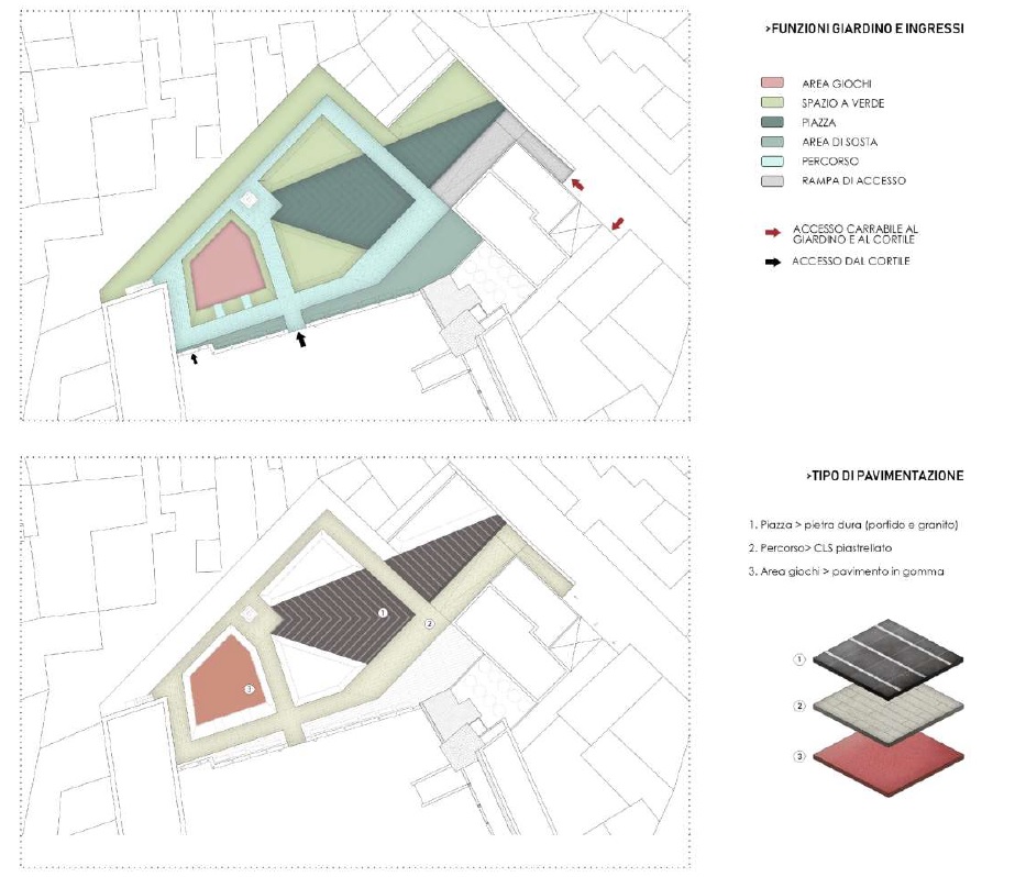 Il progetto del Giardino Pubblico di Monti, retrostante il cortile del complesso scolastico dell’Angelo Mai edificio in corso di restauro futura sede dell’Istituto Comprensivo Visconti, attualmente uno spazio incolto, è un progetto che dialoga sia con la città che con l’edificio scolastico. Il progetto ridefinisce sia uno spazio polifunzionale per le attività civiche (nella ex-cappella) che un giardino pubblico dotato di aree per la sosta, il riposo ed il gioco. L’ingresso al giardino pubblico sarà da Via Clementina ed avrà a disposizione un punto guardiania e ristoro negli ex depositi ACEA. Il Progetto è frutto della collaborazione tra Università Sapienza – facoltà di Architettura – Master di II Livello P.A.R.E.S. “Progettazione Architettonica per il Recupero dell’edilizia Storica e degli Spazi pubblici”.