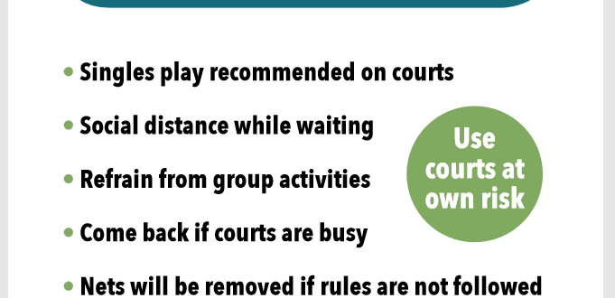 - For the most part adults have been cooperative and understanding. The exception has been tennis players, who cannot understand why they can’t use the courts. We locked them, but had at least one instance of the lock being cut. We will likely reopen the courts in the next week or so but with strict guidance.