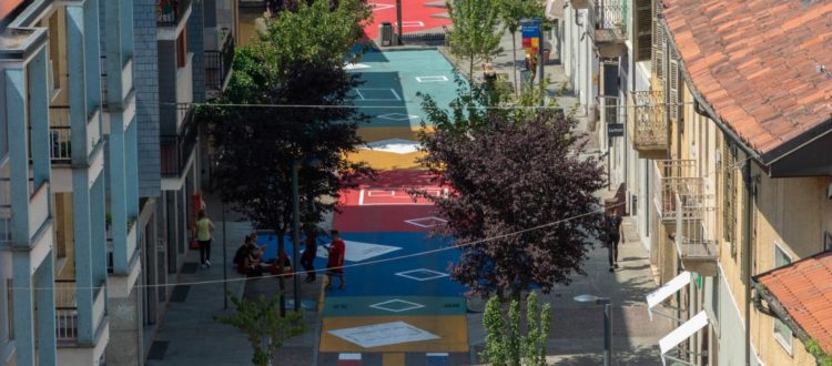 Nel mese di agosto 2020 si è avviato il lavoro con i cittadini e, attraverso un’iniziativa di arte pubblica, sono stati dipinti con colori primari i fondi grigi della pavimentazione stradale, proponendo in questa sequenza cromatica che si snoda lungo il percorso, diversi usi dello spazio pedonalizzato, dal gioco, al ballo, al riposo, alla possibilità di socializzare fino alla proposizione di messaggi che invitano a sorridere, ricaricarsi, farsi nuovi amici, baciarsi, mangiare un gelato, leggere un libro.