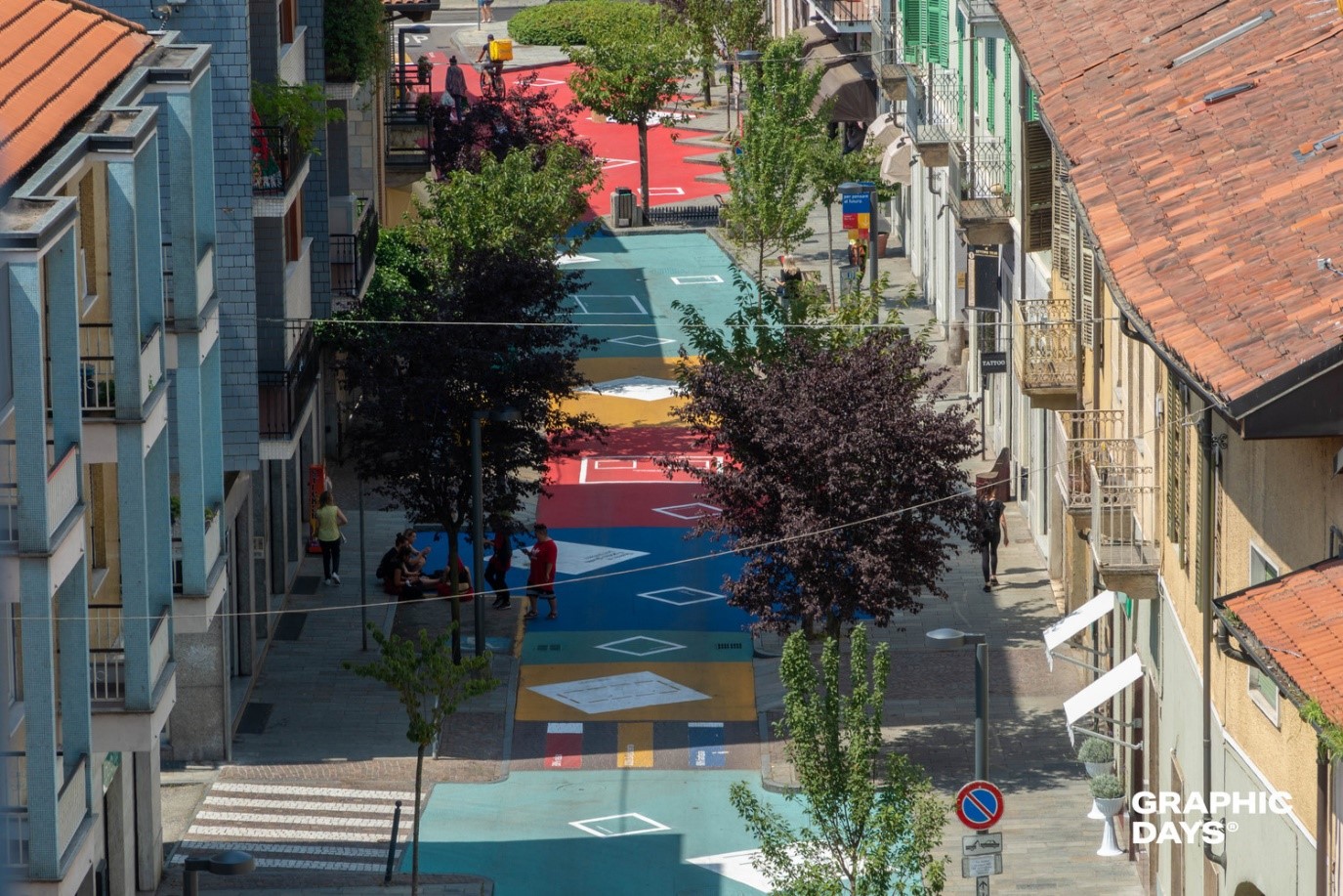 Oltre agli interventi di ricolorazione orizzontale della strada, il progetto comunica anche attraverso il rivestimento della segnaletica verticale (cartelli stradali, affissioni, serrande dei negozi) con poster, locandine e manifesti che restituiscono una nuova visione della strada e della sua percorrenza, un’immersione in una realtà colorata in tutte le dimensioni che stimoli la creatività, l’espressione, il coinvolgimento. Tutto il progetto è inoltre integrato da una continua attenzione alla diffusione delle informazioni attraverso canali dedicati sui social e materiali di merchandising, distribuiti a tutti i cittadini della città, per far sapere che c’è qualcosa di nuovo in centro e che forse vale la pena farci un salto.