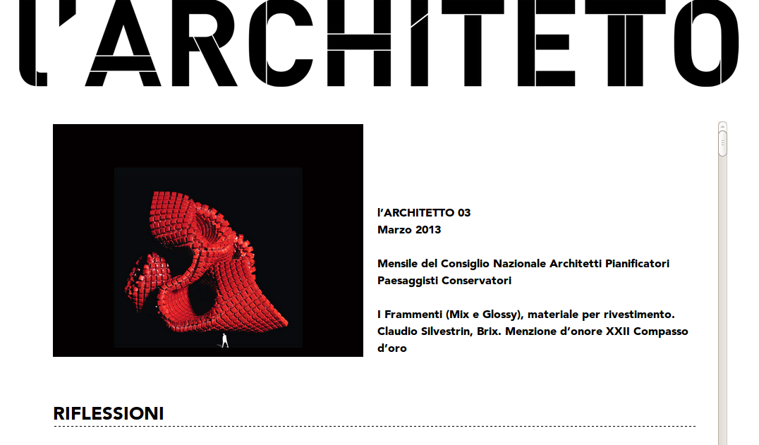 E’ consultabile il terzo numero le “l’architetto” la rivista on line del Consiglio Nazionale Architetti Paesaggisti Pianificatori Conservatori (CNAPPC). www.larchitetto.it