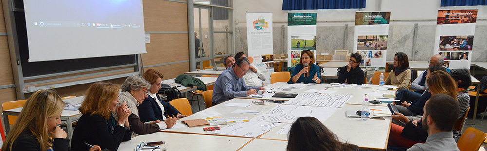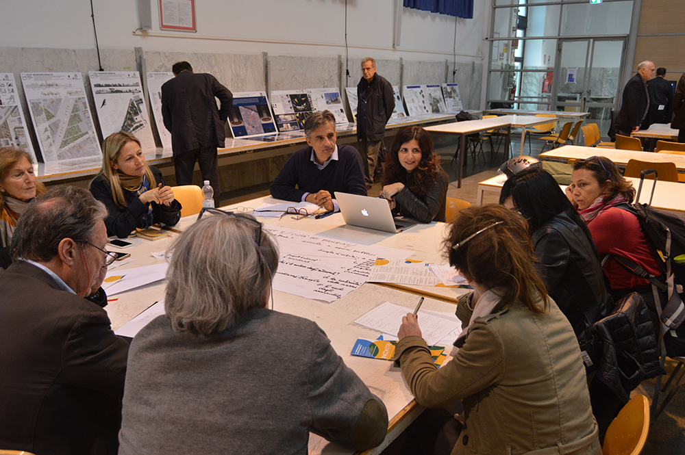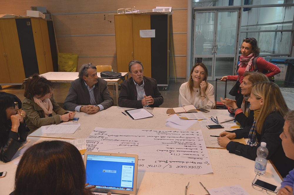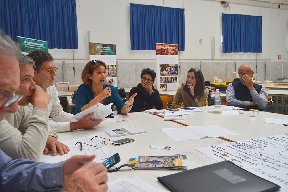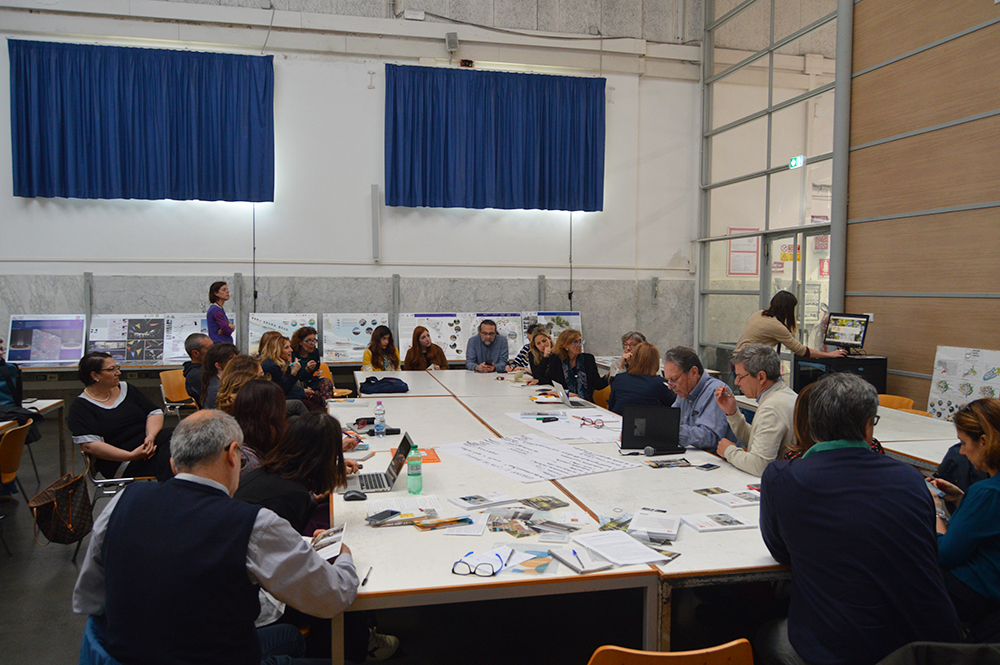 Il Laboratorio, molto partecipato anche da ragazzi/e delle scuole medie di S.Lorenzo, ha discusso di 3 esperienze non romane (2 dell’Azienda Servizi Bassa Reggiana e 1 di Pescara) e di 11 romane provenienti da 7 Municipi di Roma. Tra aprile e maggio, in preparazione della Biennale, 9 Municipi di Roma avevano partecipato a tre incontri presso Il Macro Asilo ad esiti dei quali un’aula del Dipartimento (aula Musmeci) è stata riservata alla illustrazione dei loro interventi attraverso filmati proiettati in loop e pannelli illustrativi.