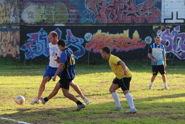 il calciatore di serie A Andrea Masiello dell’Atalanta in una partita di calcio dopo aver lavorato insieme ad alcuni ragazzi alla costruzione di un campo da calcio a cinque presso una pinetina della periferia di viareggio nel quartiere Varignano – Parco “La Fenice”