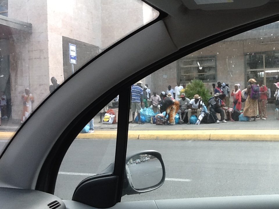migranti presso la stazione di Viareggio alle ore 9 in attesa del bus per recarsi al lavoro