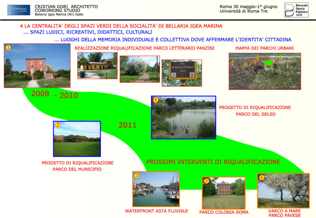 Obiettivi: Promuovere una “coscienza ambientale” verso lo spazio pubblico come valore della collettività. Attraverso percorsi partecipati è stato elaborato un Piano Idea e successivamente dei progetti urbani esplicitano la Vision della città futura