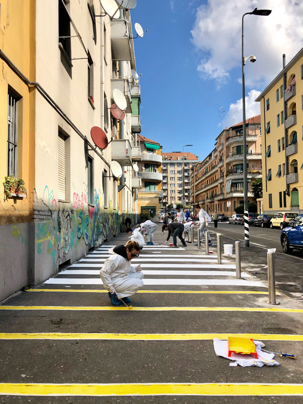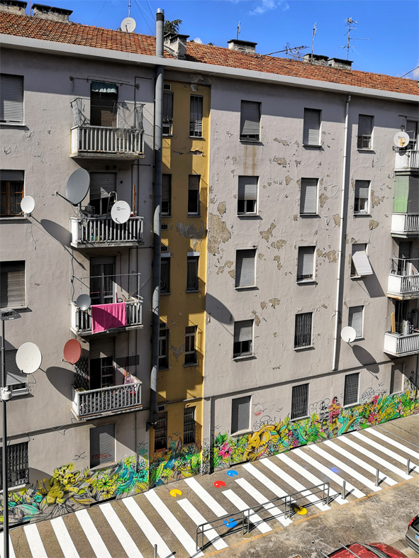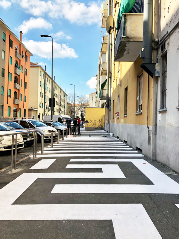 Green Living Lab San Siro è un’azione pilota del progetto “SoHoLab – The Regeneration of Large-Scale Social Housing Estates through LivingLabs”, finanziato dal programma JPI-Urban Europe. A fronte di un diffuso abbandono e scarsa cura di strade e spazi aperti nel quartiere popolare San Siro a Milano, il progetto si propone di generare un cambiamento fisico e percettivo negli abitanti per lo spazio ad uso pubblico. Il progetto, in un più ampio scenario di cambiamento, focalizza l’attenzione sulla qualità di via Abbiati. La trasformazione avviata dagli architetti di Temporiuso.net in collaborazione con i ricercatori di Mapping San Siro e la partecipazione di abitanti ed associazioni ha portato alla progettazione, realizzazione e cura di una grafica orizzontale “a zebra” lungo un marciapiede, di dissuasori per auto e rastrelliere per biciclette con la scritta “ABBI CURA” e di tre piccole “oasi/fioriere” per il giardinaggio. Il percorso partecipativo da ottobre 2017 ha coinvolto abitanti, scuole e associazioni locali – “rete SANSHEROES”. L’intervento realizzato a marzo 2019 è stato possibile anche grazie al primo Patto di Collaborazione del Comune di Milano, sottoscritto il 21 dicembre 2018, una politica promossa dall’Assessorato alla Partecipazione che ha garantito il supporto dei tecnici dell’Assessorato alla Mobilità, del Nucleo di Intervento Rapido ed Assessorato all’Urbanistica. A questi si aggiungono i volontari del programma ErasmusPlus e dell’associazione Retake Milano.