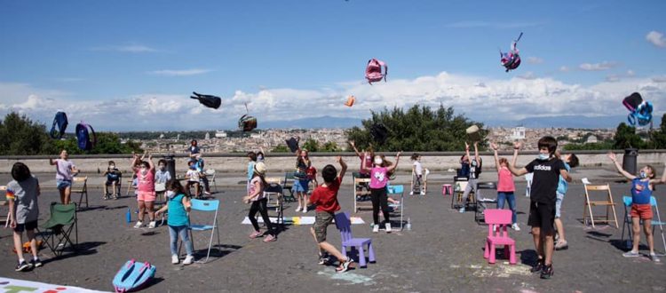 L’8 giugno, in occasione dell’ultimo giorno di scuola, Apriti Scuola ha progettato e realizzato un evento distribuito e diffuso sul territorio: ogni associazione, gruppo o comitato ha lavorato con i suoi genitori, nel suo territorio, per permettere ai bambini e alle bambine di prendere commiato dalla loro scuola e di riappropriarsi degli spazi che gli erano stati sottratti, nel contempo rivendicando e illustrando con i fatti la sua idea di scuola e di spazio pubblico. Gli eventi realizzati all’insegna di questa idea sono stati moltissimi, tutti accomunati da un senso di gioia e dal piacere del ritrovarsi insieme. Biciclettate che hanno unito diverse scuole di un territorio, laboratori didattici all’aperto, installazioni con grembiuli, nastri e disegni fatte sulle cancellate della scuola, mostre fatte con i pensieri e i disegni dei bambini…tutta la città dal centro alla periferia è stata per un giorno animata dai bambini e dalle famiglie, per riaffermare con forza la loro esistenza, i loro diritti e il loro ruolo all’interno degli spazi della città.